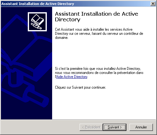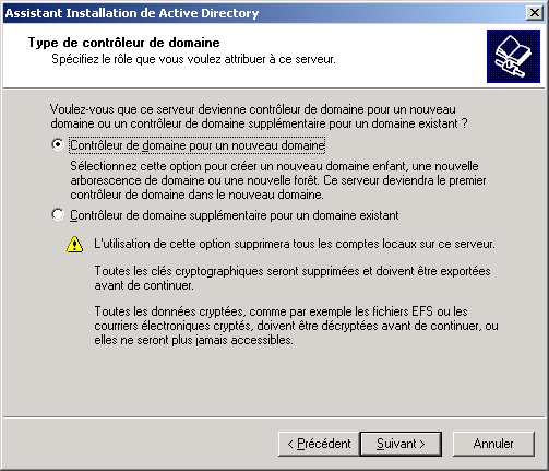 domaine, puis sur Suivant. Ceci est équivalent à lancer la commande DCPROMO :