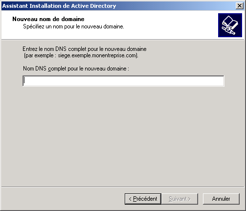 Spécifiez le nom du nouveau domaine et cliquez sur Suivant :