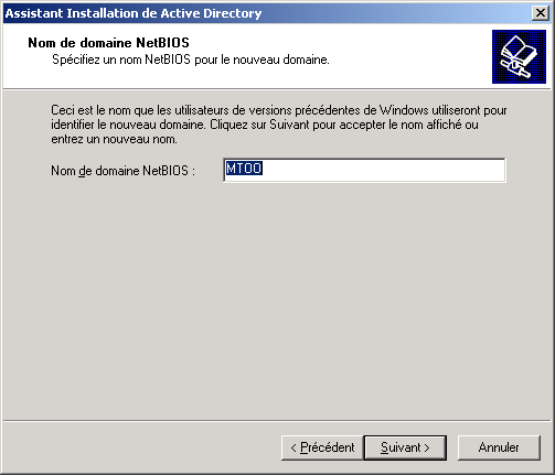Confirmez le nom NetBIOS de votre domaine (le même si