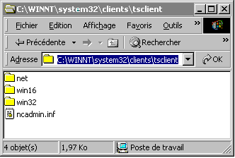 Les programmes d'installation des clients se trouvent dans C:\WINNT\system32\clients\tsclient :