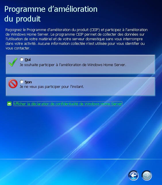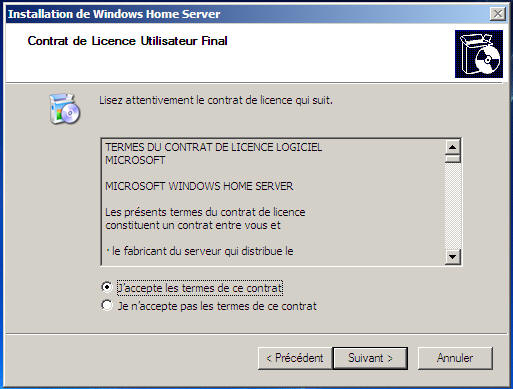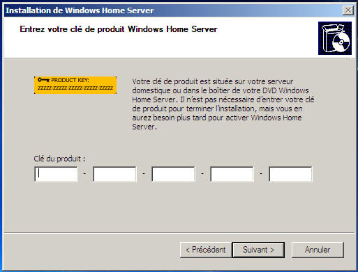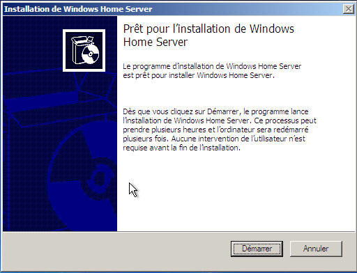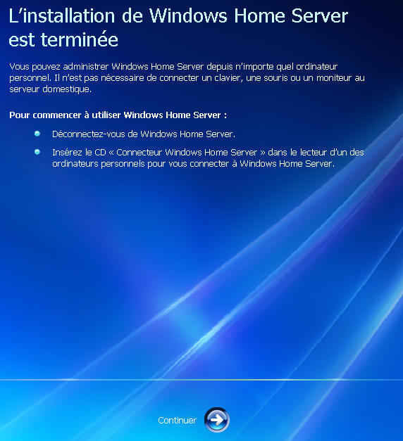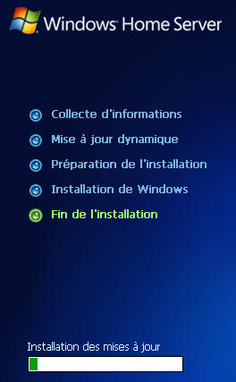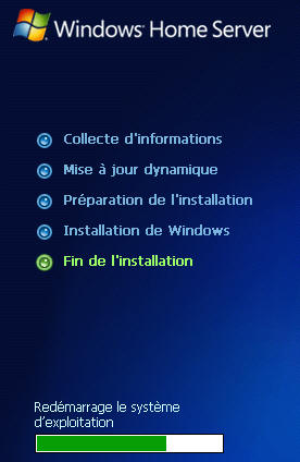 Puis reboot et on retombe dans le programme d'installation de WHS :