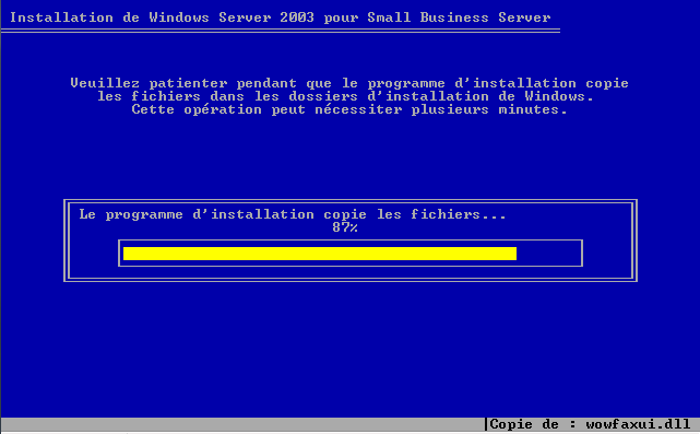 Et l'installation démarre : Création des partitions Ensuite installation de Windows Server 2003 SBS : (il n y a rien a faire pendant ces étapes)